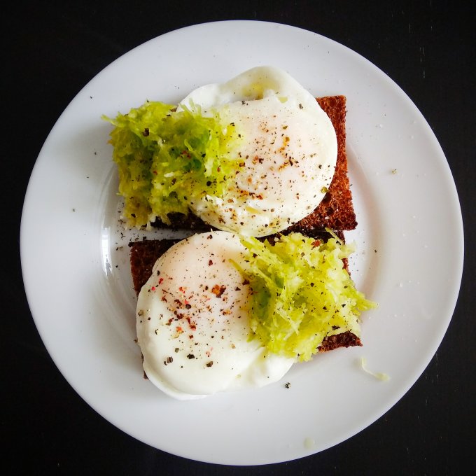 Иногда нет ничего вкуснее обжаренного ржано-пшеничного хлеба, посыпанного солью. Чтобы оттенить вкус добавил яйца, мелко натертую зелёную редьку, свежемолотую смесь перцев.