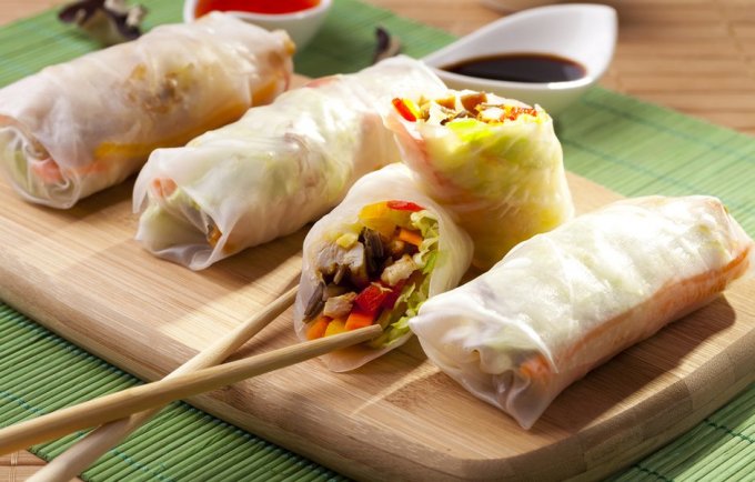 Счастливчик Джек, у нас есть суши-сеть "Тануки", они делают два варианта без обжарки. Рисовая бумага получается такая немного резиновая, но откусывается хорошо. В таком варианте мне нравится, что она служит скорее оберткой для микса ингредиентов.