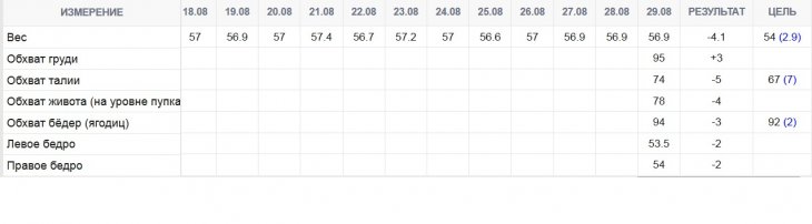 По весу: где-то с середины августа вышла на стабильные 57, затем замерло.