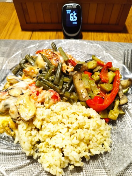 | Горбуша с мидиями на подушке из стручковой фасоли |