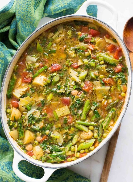5 мин — фасоль. Влить 2 ст. л. бульона, тушить 10 мин на слабом