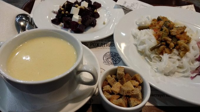 Иногда ланч в многообещающем месте такая... Такое... В общем, даже по цене столовой это было бы чересчур. А тут это позорное варево ты ещё должен на подносе с барной стойки самостоятельно забрать. Удивлен был, что в обязанность посетителя не входит мытьё посуды за собой.