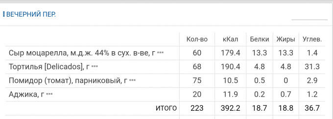 | Кол-во | Калории | Белки | Жиры | Углеводы | |