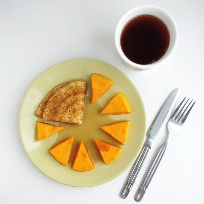 Полдник. КБЖУ 146/4/3/26, блин, тыква, сироп 0 ккал, чай «Лунный свет»