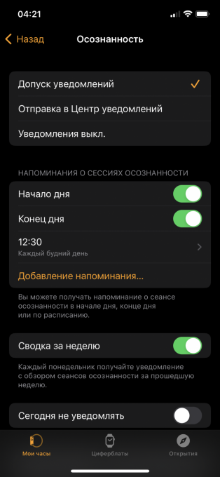 Юля, в приложении на телефоне: - уведомления / осознанность /