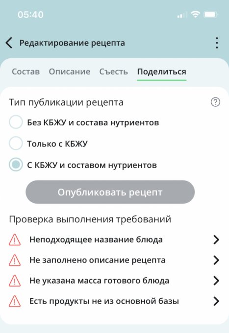 Счастливчик Джек, вот аналогично. Создал рецепт, заколебался, удалил. Плюс заметил, при вытапливании жира, например, из утиной грудки при жарке, система плюсует огромное количество Жиров. В итоге плюнул и забиваю по продукту в сыром виде