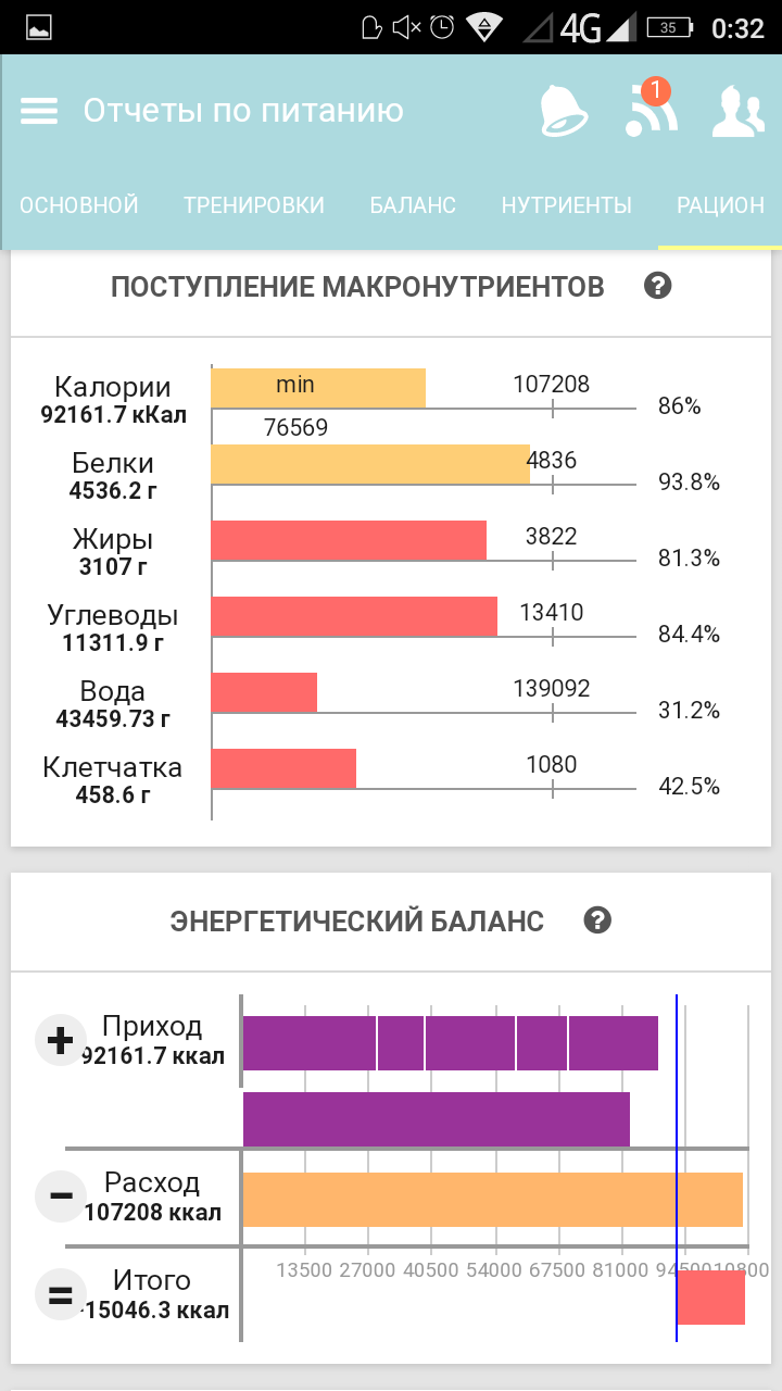 | Итого за день | 1240 | 1878 | 86 | 100 | 164 |