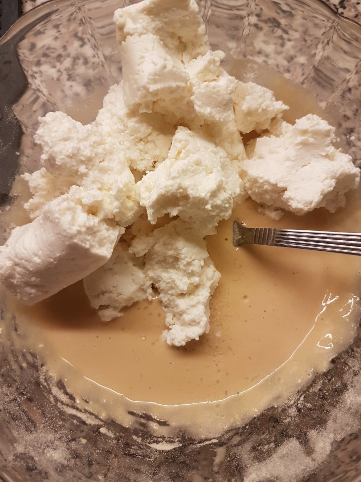 Добавляем творог, соль по вкусу, сахар если необходимо ( я не добавляла. протеин у меня ванильный).