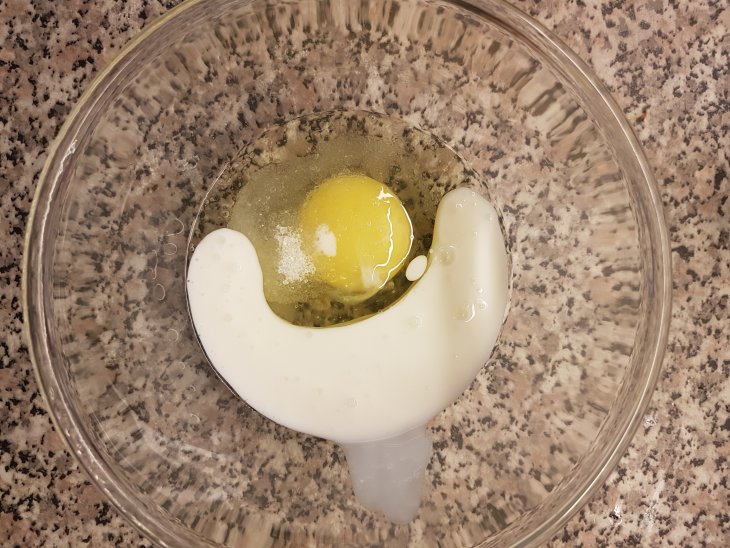 В миске смешать 1 яйцо, кефир ( в оригинальном рецепте 1%, у меня