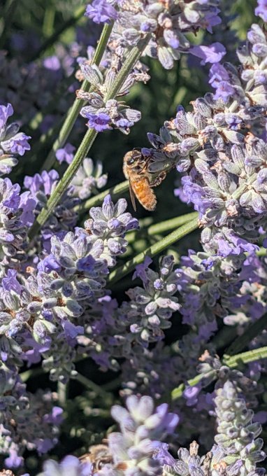 Ещё я сорвала себе качан капусты и вырвала три молодые свеклы на борщ на завтра. Ну и напоследок сорвала 3 небольших цукини на овощное рагу. Пока я фоткала пчёлок, муж нарвал лаванды в дом, а на выходе мы купили маленькую баночку лавандового меда.