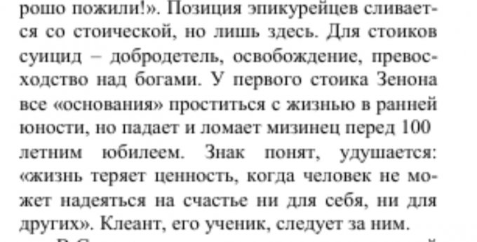 Я вот тут недавно обратил внимание на отношение стоиков (философов стоической школы) к суициду - он не только не осуждался, но и считался вполне достойным поступком