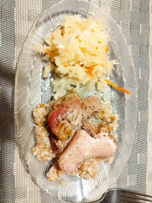 Индейку запекла. После тошноты весь день, захотелось квашеной капусты и каши. Знаю, что неправильно, но...отредактировала.