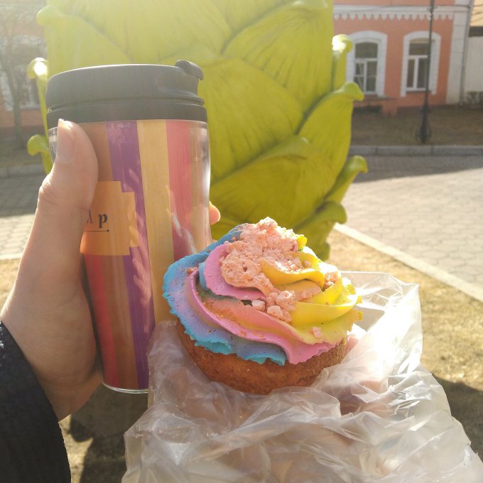 Рука ночью сильно разболелась, так что проснулась я за полчаса до будильника и страдала весь день. В обед выпила ибупрофена и решила, что больше не могу страдать по всем фронтам одновременно: пошла купила себе капкейк. Порадовалась и дотянула до конца рабочего дня.