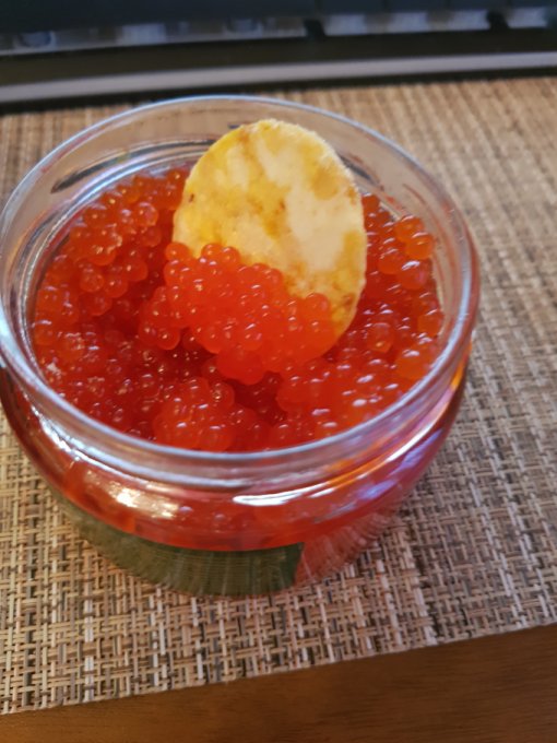 Сегодня в магазине была распродажа имитации икры, взяла 2 банки: одна 30 ккал на 100 г, вторая 15 ккал, обе сделаны из бульона. Цена банки 50 р.) На вкус я не отличаю имитацию от выбранных фирм от настоящей икры и не вижу смысла платить больше. Да, натуральная икра полезнее по составу, зато этой сложно объесться так, чтобы стало стыдно.)