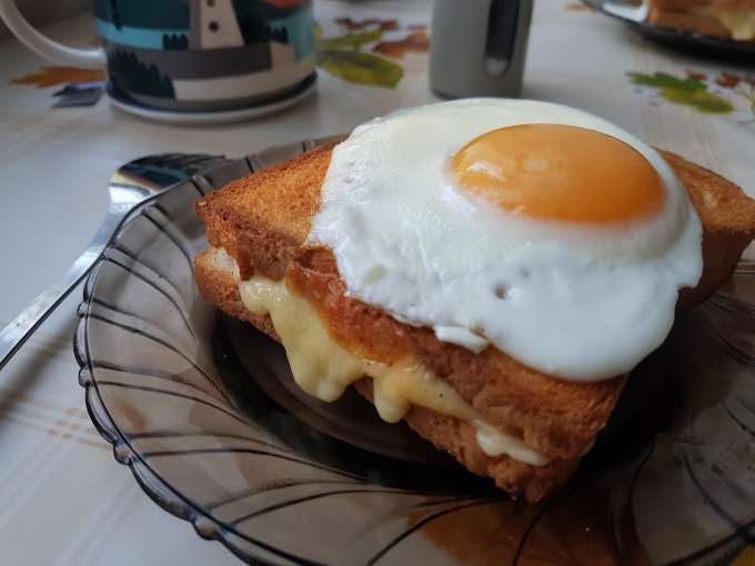 Очень сытно получилось, и готовить весело.) Но крок мадам деликатнее и нежнее получается за счет консистенции желтка. Нашла фото в архиве.)