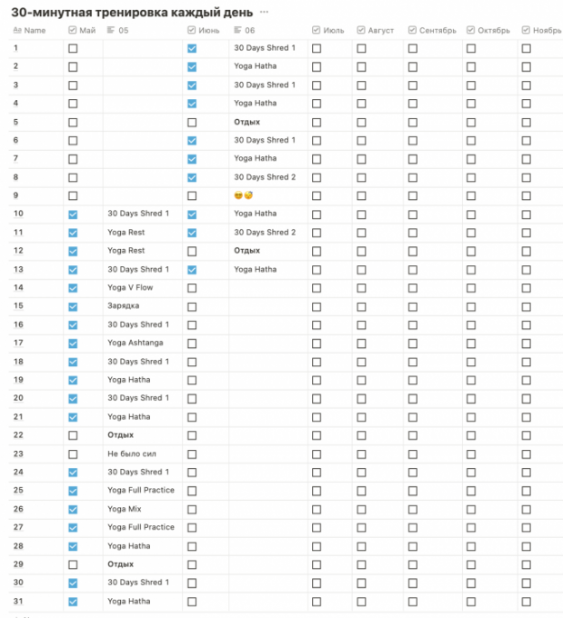 Не знаю почему, но только сейчас автор предлагает вводить трекер привычек. Для меня это главный инструмент! Он даёт представление о том, какой путь уже пройден, а также подогревает азарт и желание поставить побольше галочек подряд.