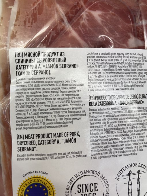 любом большом супермаркете и мясной лавке. У настоящего прошуто