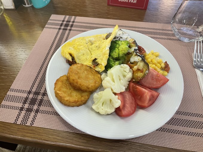 завтраком в отеле. Цветная капуста, брокколи, кукурузка,