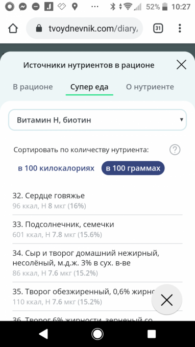 На всякий  случай  забила в чистый  завтрашний  день 8 гр семечек  подсолнечника -  чуть больше  100%  нормы биотина.