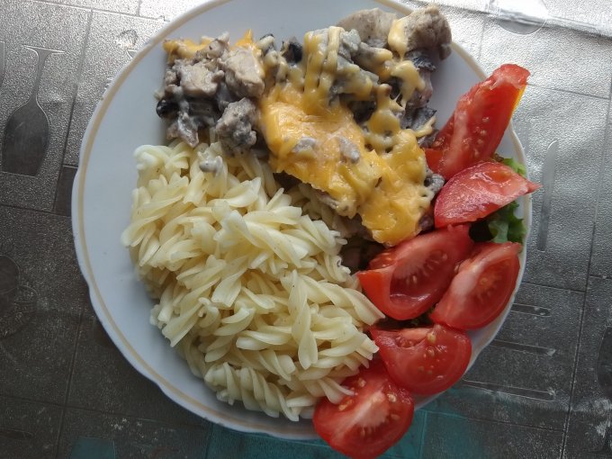 Курица с грибами в сметане