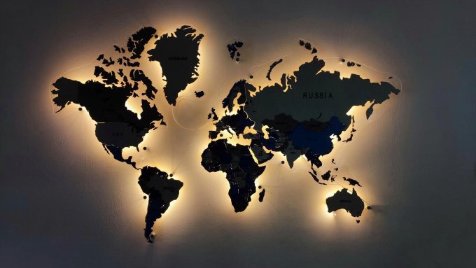 В самой кофейне прикольная карта мира, но достаточно темно потому
