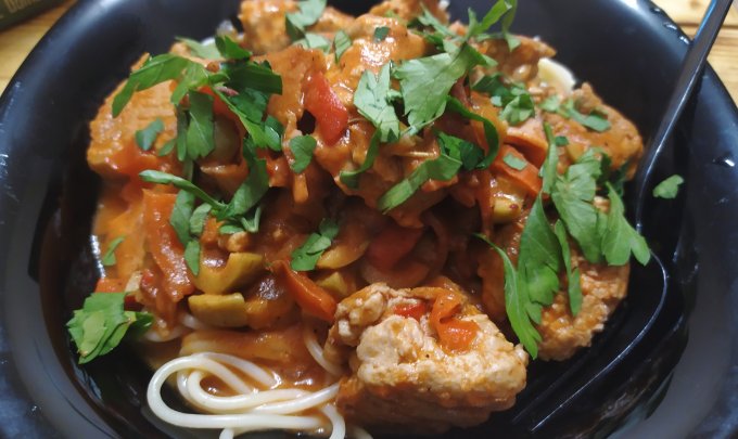 Меня привлекла на полке магазина банка кокосового молока. Не очень знаю, как его использовать, буду эксперементировать. Сегодня добавила в подливку к макарошкам, вышло неожиданно здорово ^_^