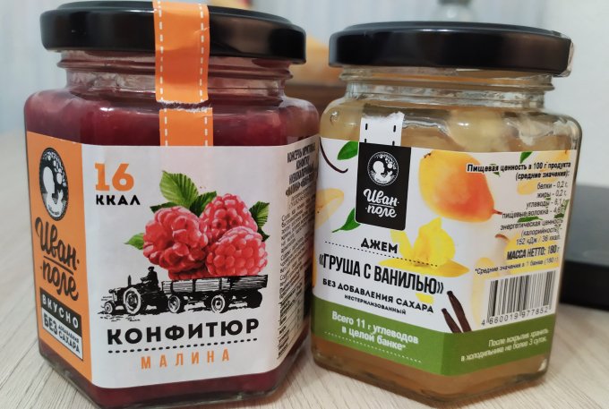 Юлишна, очень. Я люблю грушу и малину, вот их и выбрала. Груша сладкая вообще, без привкуса подсластилелей. Малина не как варенько, а именно густой конфитюр. Мне зашли)