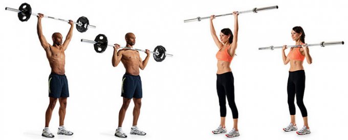 Жим штанги с груди стоя (армейский жим)