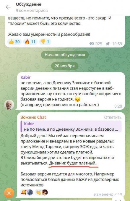 При попытке открыть дневники питания или тренировок система