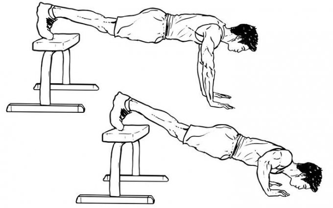 Такая вариация отжиманий обеспечивает нагрузку не только на трицепс, но и на верхнюю область грудных мышц.