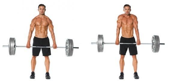 Шраги со штангой стоя — упражнение, использующееся в силовых