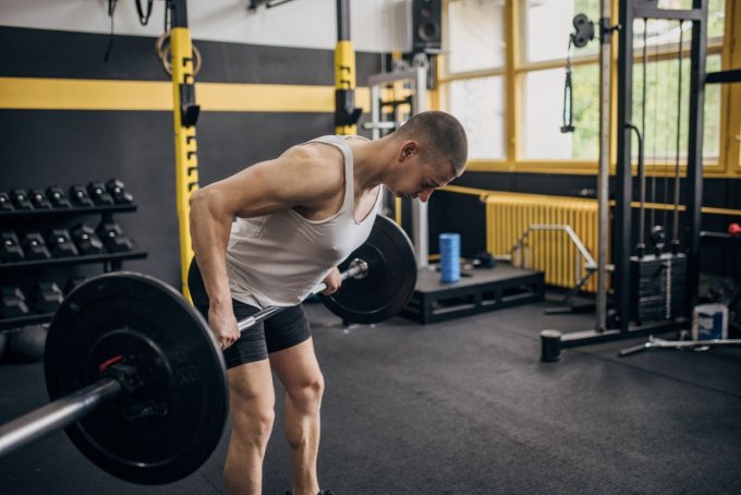 Выполняйте тягу штанги плавно. Позитивная фаза движения — вверх