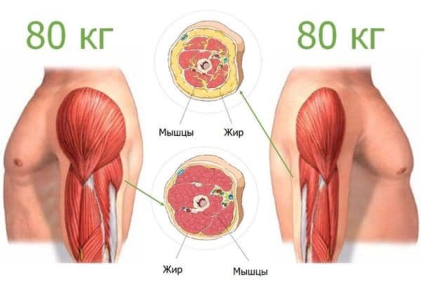 массы тела. Это связано с тем, что жировая ткань уходит, а мышечная