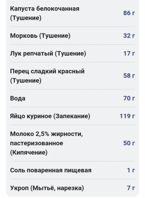 | Молоко 2,5% жирности, пастеризованное (Кипячение) | 50 г |