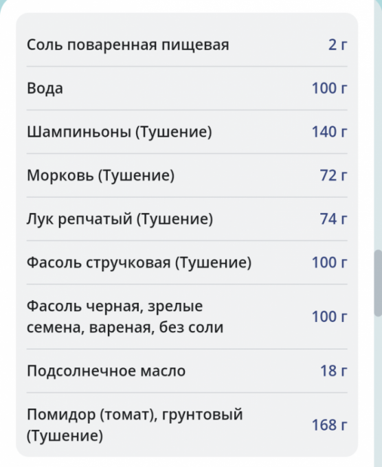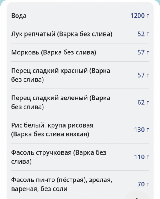 | Фасоль стручковая (Варка без слива) | 110 г |