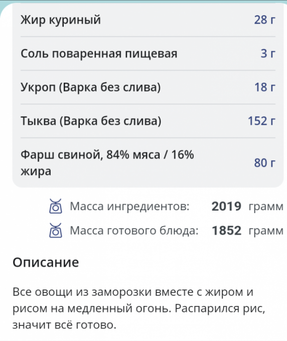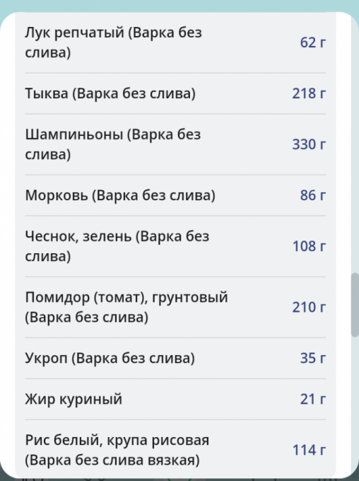 | Рис белый, крупа рисовая (Варка без слива вязкая) | 130 г |