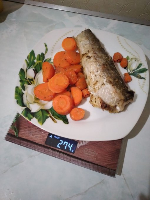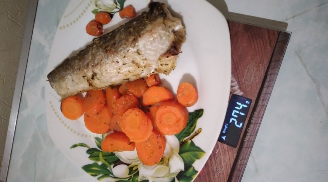 вчера на ужин-хек, запечённый в духовке с морковью.