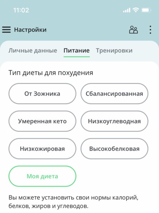 Чтобы увидеть отчеты по питанию и график веса, необходимо войти.