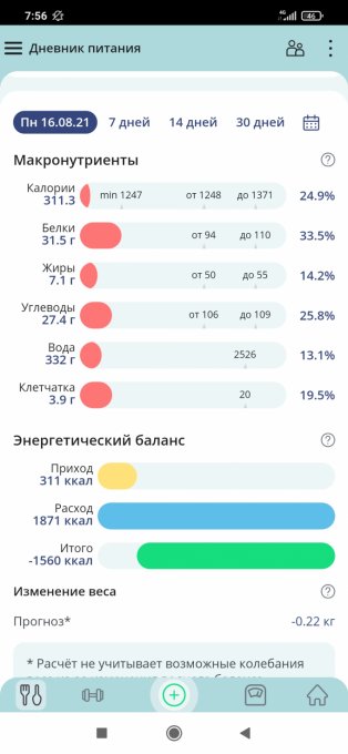 Дневник питания за 14.08.2021