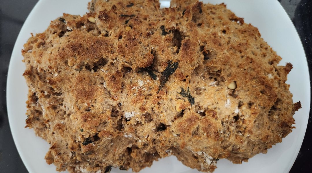 | Хлеб из гречневой муки с мятой, кедровыми орешками и семенами шалфея |