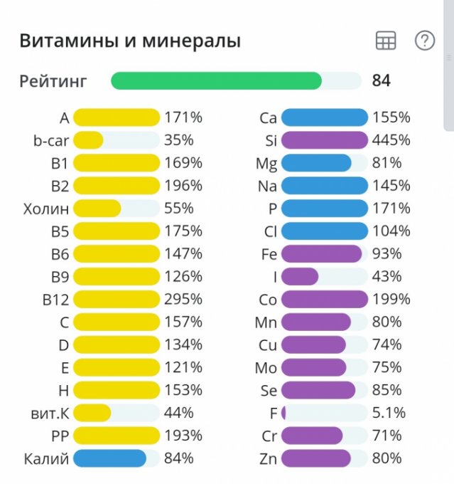 | Кол-во | Калории | Белки | Жиры | Углеводы | |