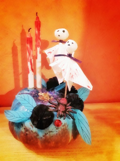 Сырая тыква - интересная, вкусная, но задолбалась ее жевать ломтиками, а тертую не люблю. Зато для драматической самайнской инсталяции тыковка отлично подошла.
