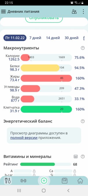 материалы и заполнила дневник питания.