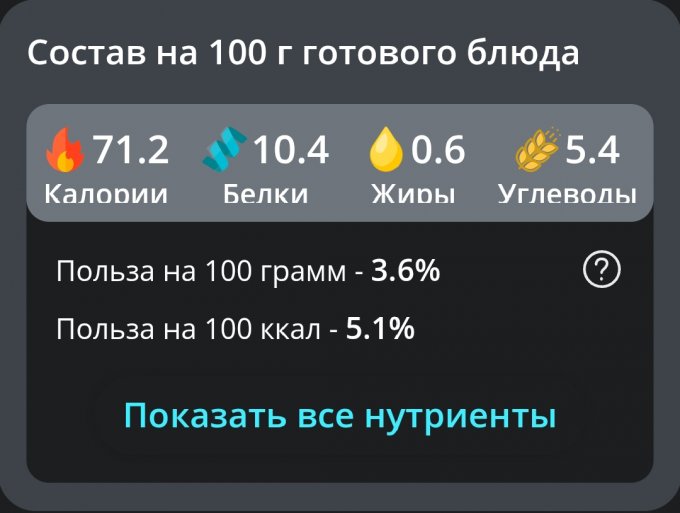 | Калории | 97.9 кКал | 5.81% | |
