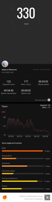 Энергозатраты: 330 ккал