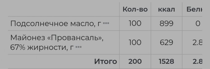 Кстати, если смотреть по Зожнику, то салатик с майонезом будет полезнее салатика с подсолнечным маслом. Калорий меньше, микро чуть больше))
