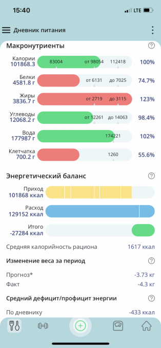 Дарья Клевер, да, так и получается) здесь в зожнике примерно расход выставляешь, а если смотреть по каждому дню, то очень интересная картина получается) все цифры перед глазами, проблема хорошо видна