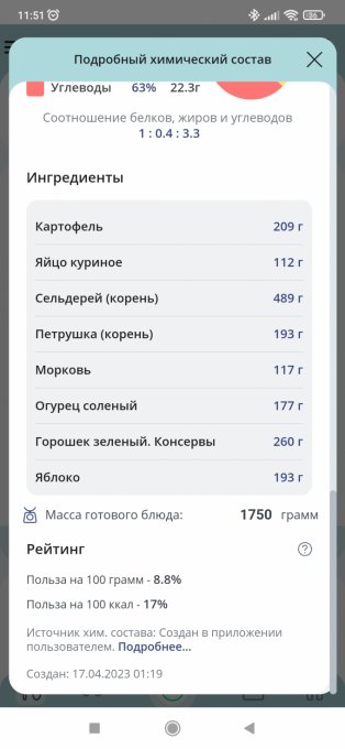 Чтобы увидеть отчеты по питанию и график веса, необходимо войти.