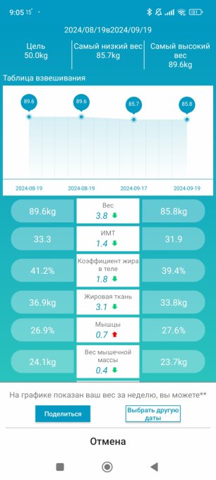 💚 За месяц ушло 3,8 кг, в основном за счёт жира, мышцы чуть