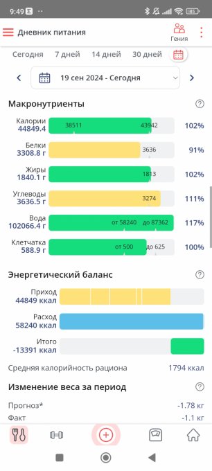 бжу, готова к этому. Плюс подключаю тренировки. Мой организм
